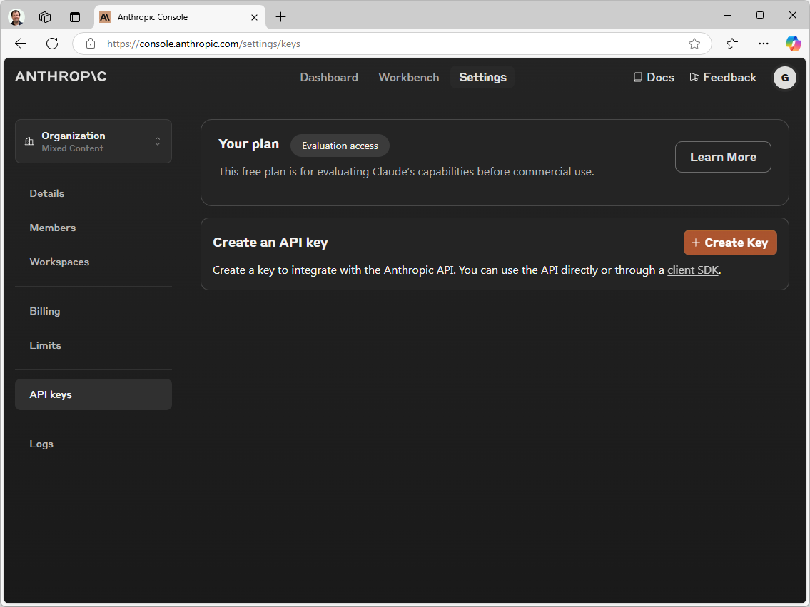 Er bestaan diversen toepassingen die de Claude.ai modellen van Anthropic kunnen gebruiken. Voor die toegang heb je een API-sleutel nodig. Die kun je maken via de Anthropic Console. Daar kun je ook direct credits kopen waarmee het gebruik van de dienst wordt verrekend. In deze workshop gaan we een account en API-sleutels maken en credits aanschaffen.